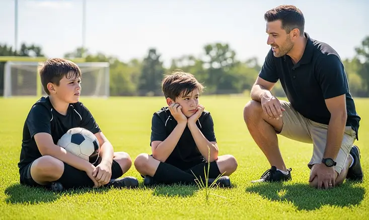 Start with connection before feedback. Try, “I loved watching you play,” then ask what felt challenging. Avoid correcting mistakes in the moment. Let emotions settle first. This mirrors the same supportive approach used in how to talk to your child after a tough soccer game, where listening comes before coaching.