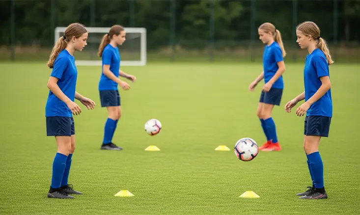Futsal keeps kids constantly involved because the court is smaller and the ball moves quickly. This increases touches and decision-making. These improvements match the gains seen in first-touch futsal training, which strengthens control, balance, and awareness.